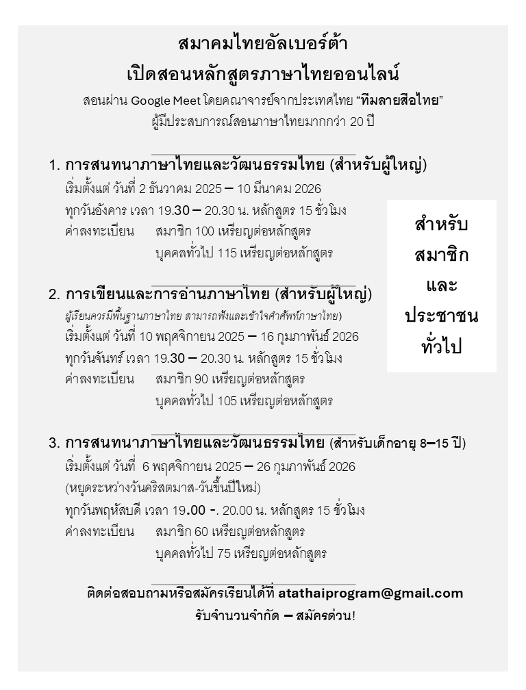 โปรดติดตามข่าวสารจากเว็บไซด์ albertathaiassociation.com